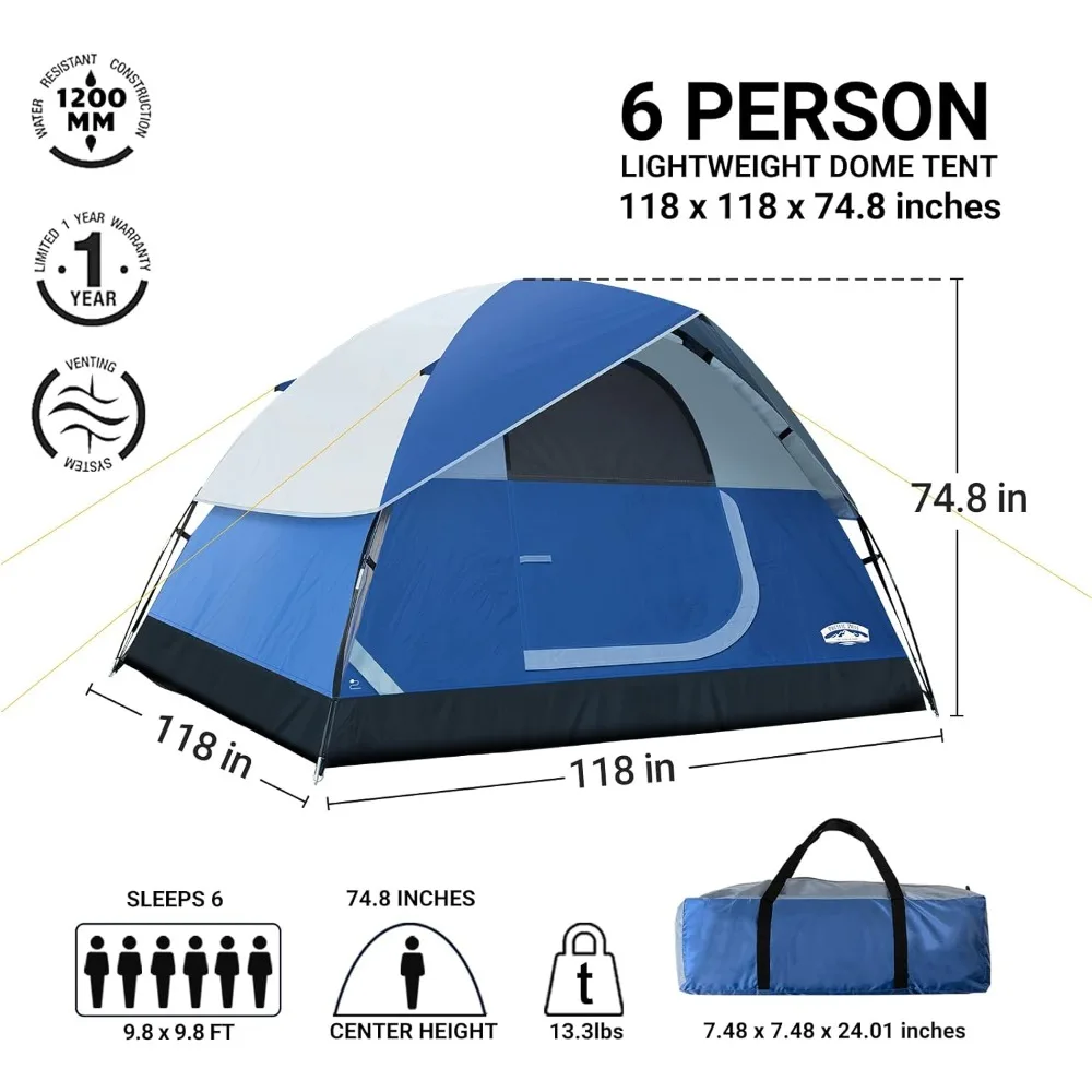 2/4/6 Person Family Dome Tent with Removable Rain Fly, Easy Setup for Camp Outdoor