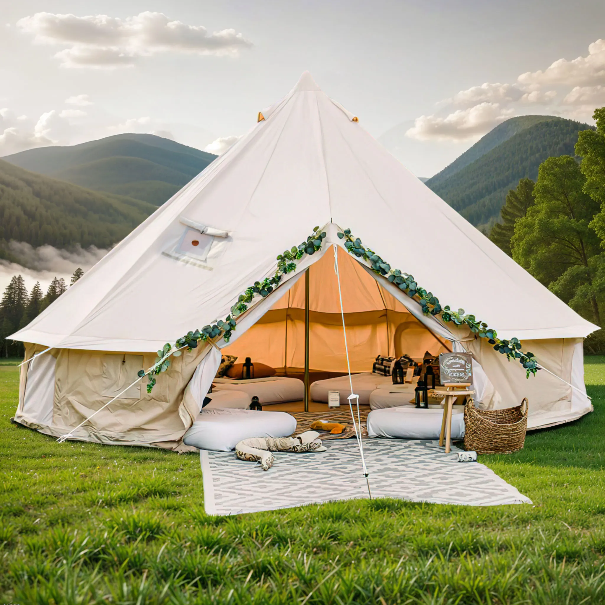 Cotton Canvas Bell Tent Glamping British Yurt Camping Tent Single Door