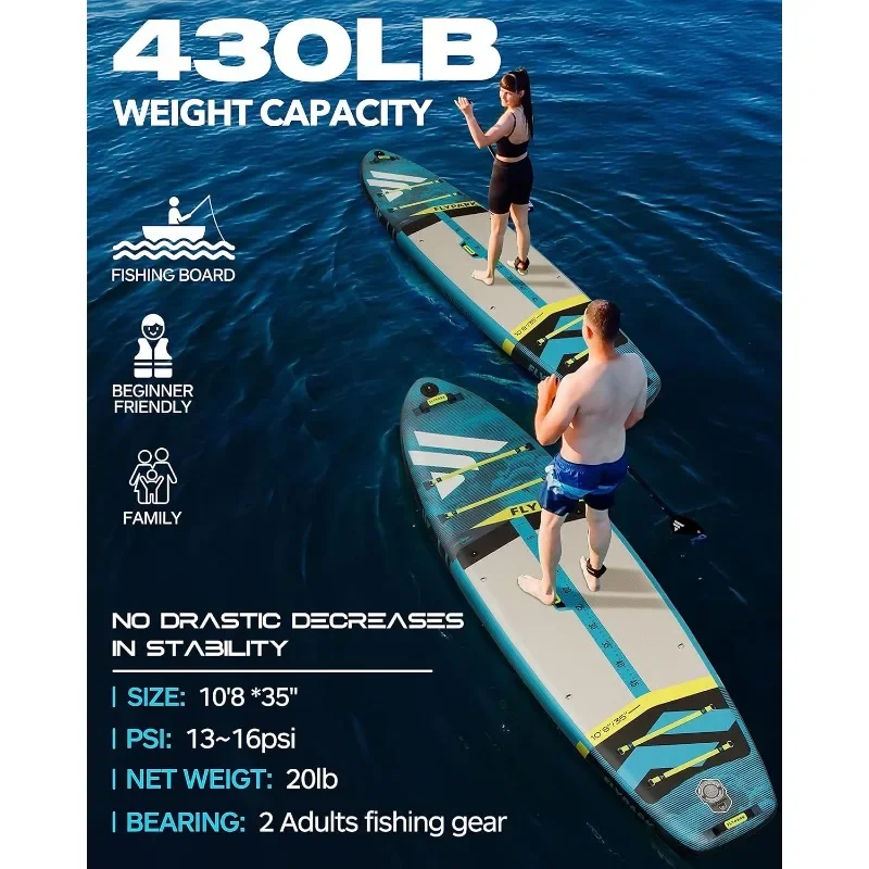 3” EXTRA WIDE FOR BETTER BALANCE | Flypark Inflatable Stand Up Paddle Board is made with extra 3” in width than the normal 32” board. Only 20lbs deflated and carry up to 430 lbs‼ 11’*35” is ideal to provide better stability and striking balance, ideal for versatile use of all skill levels and all scene. The paddle board is perfect for family, large size people, 2 people with pets and beginner friendly. Feel free to go for yoga, fishing, traveling!