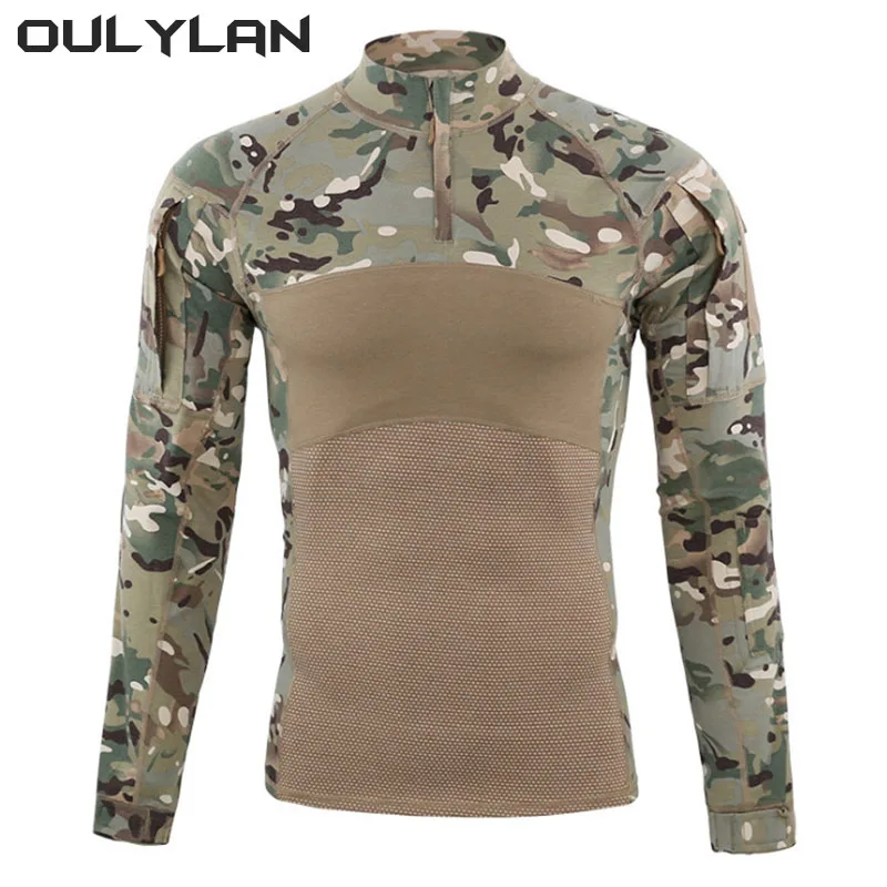Oulylan Camouflage Long Sleeve Hunting Climbing Shirt Male Breathable Sport Clothes Men’s Outdoor Hiking T-Shirts Hunting