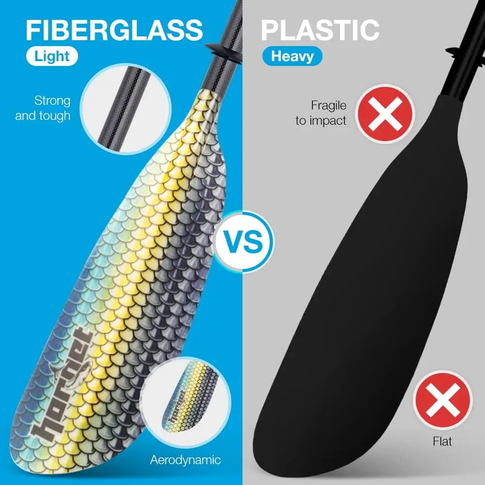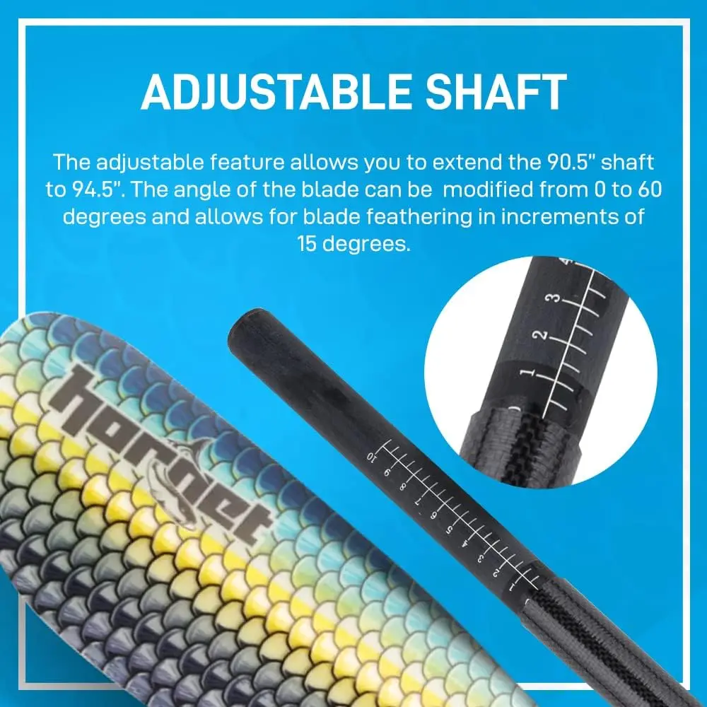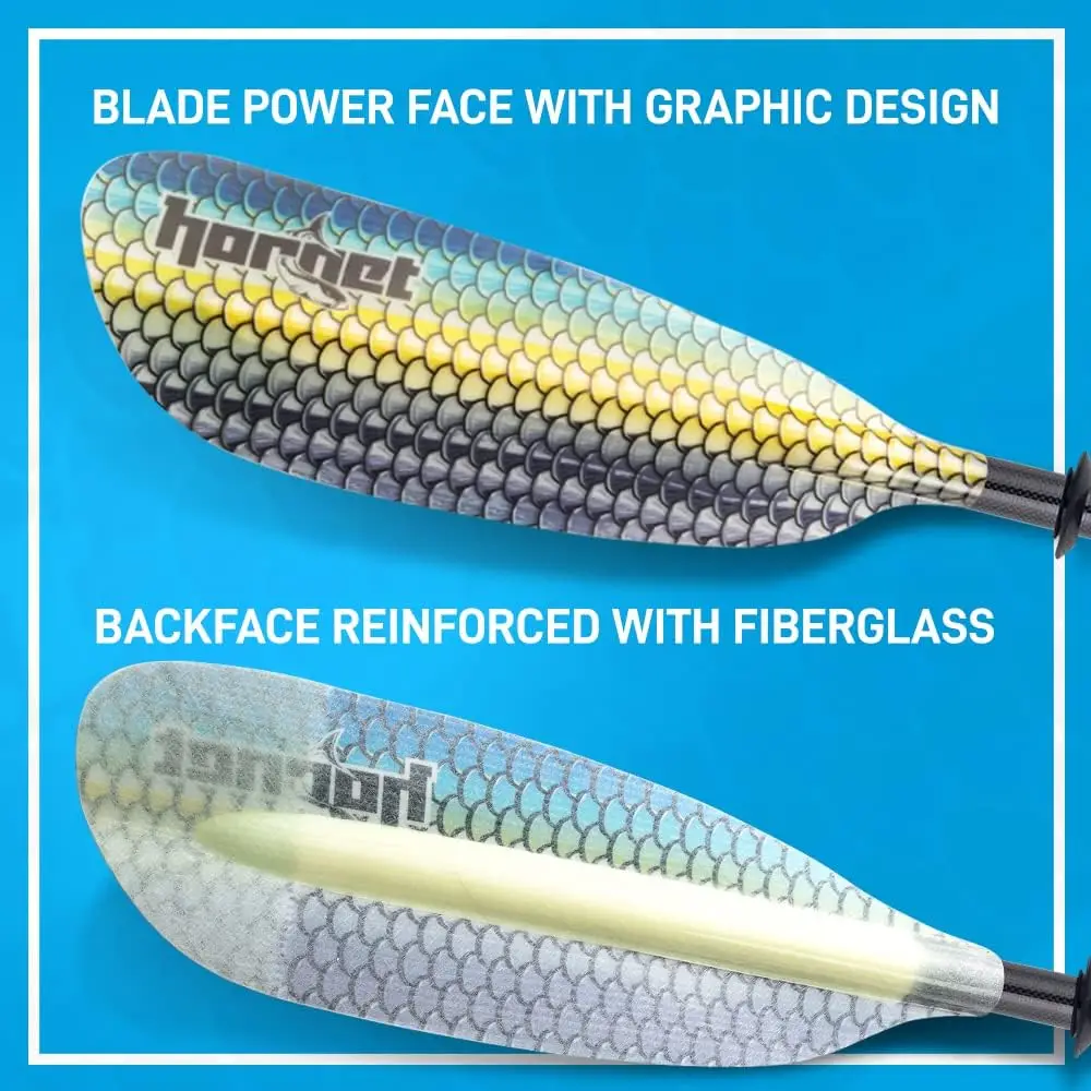 Are you looking for a kayak paddle that is a high performance, lightweight, durable, and easy to transport? Look no further. Weighing at only 1.6 pounds, this Hornet product is much lighter than the typical plastic kayak paddles with an aluminum shaft that you find elsewhere. Paddling in a river, ocean, or lake? This kayaking oar will get you there. Whether you are paddling with an inflatable kayak, angler kayak, or other recreational vessels, the Hornet graphic paddle will make you stand out!