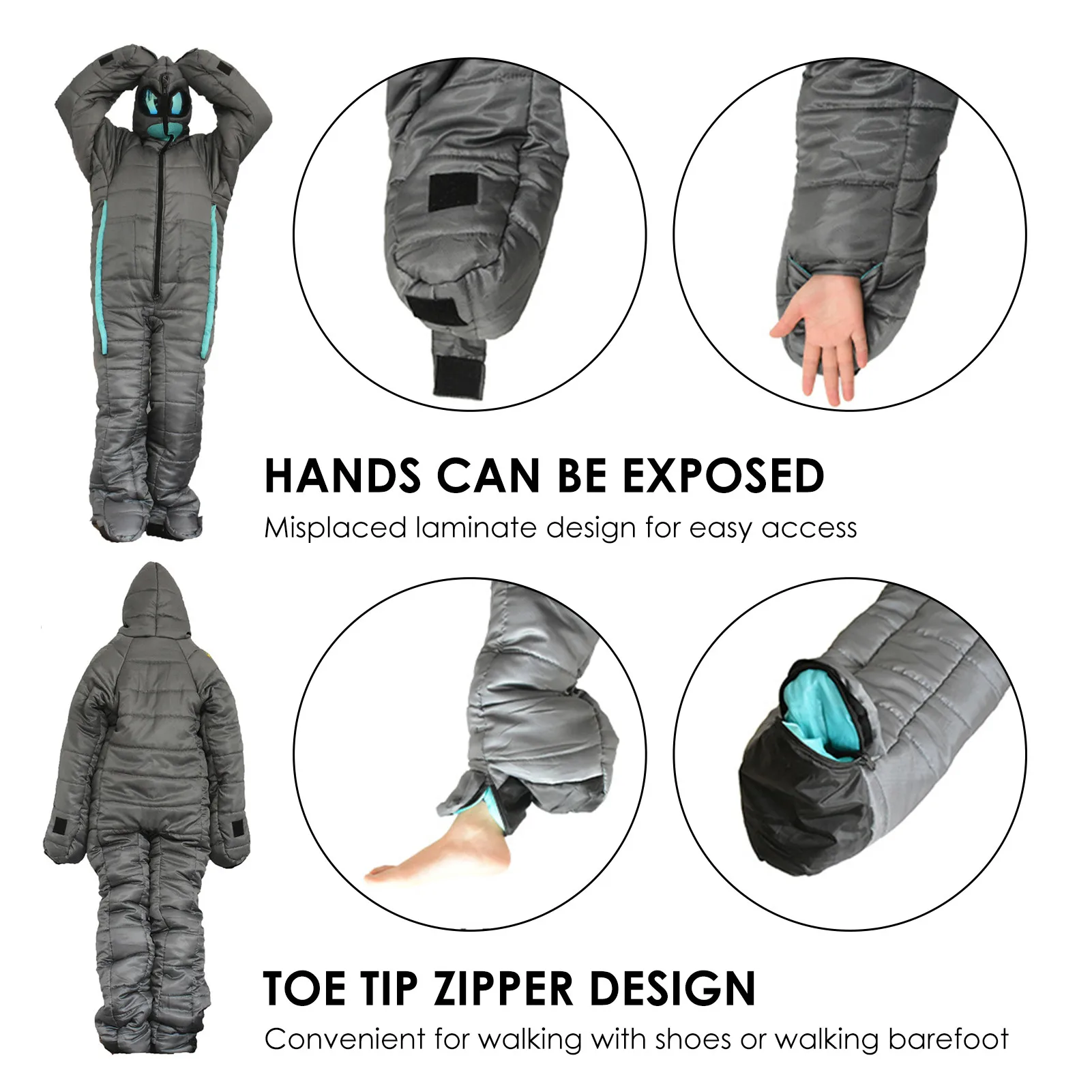 1. This full body sleeping bag gives you the ability to walk or out without having to remove your sleeping bag.
